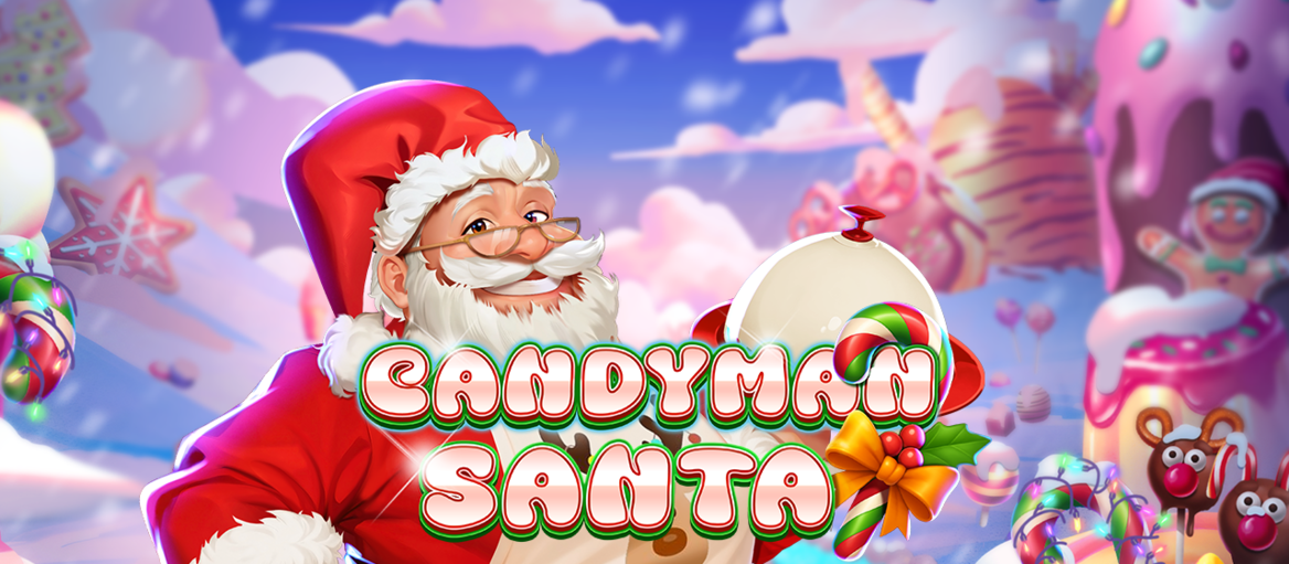 Hier kannst du mit Lebkuchenmännchen, Zuckerstangen und anderen süßen Leckereien die Reichtümer von Chefkoch Candyman Santa erspielen und dich daran satt essen.